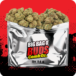Love your indicas? This Big Bag o' Buds CombOz is for you! With two separate 14 g bags, you get the best of both worlds: Pink Kush Mints' herbal creaminess and Jet Fuel Pie's gas and kushy notes. THC levels at 22-28% ensure a potent journey regardless of which route you take!